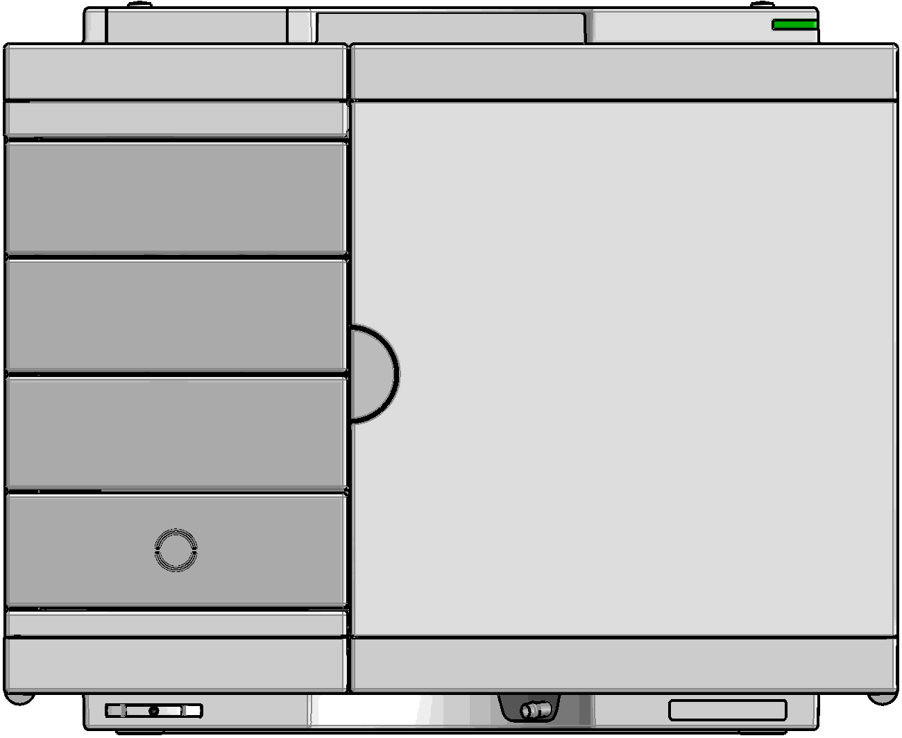 All positions in the Sample Hotel must be filled either with dummies or drawers. The drawers must be installed from bottom to top.