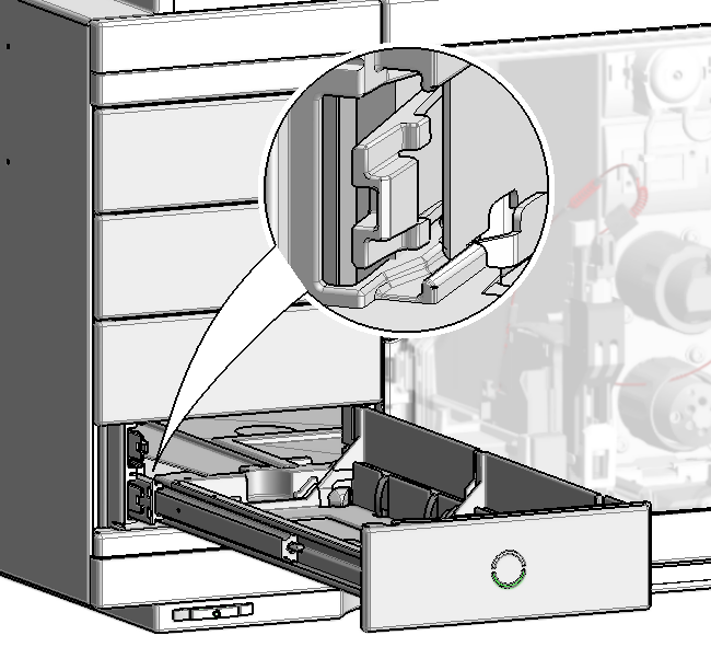 Place the new drawer horizontally into the sample hotel. Check that the drawer matches the middle bracket of the sample hotel.