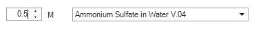 For LC Drivers 3.4 or newer, please use Ammonium Sulfate in Water V.04 and Sodium Chloride in Water V.04 and manually input the molarity (0.5 M - 3.0 M or 0.5 M - 2.0 M respectively) as shown in the example below.