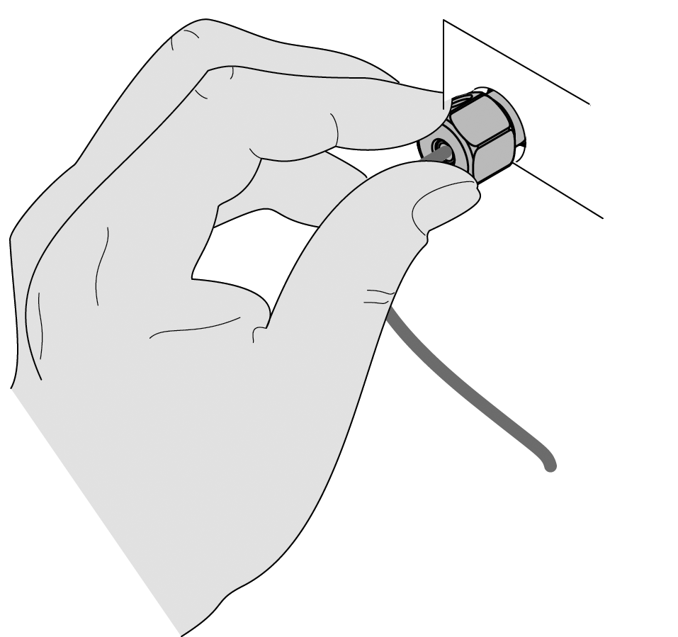 Finger tighten the nut into the port until snug.