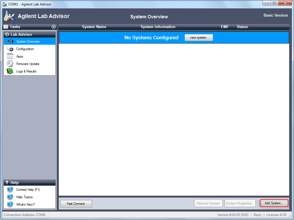 The system becomes visible in the System Overview, and Lab Advisor tries to connect to it.