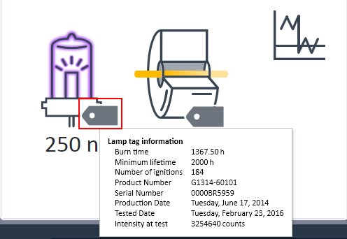 RFID tag information is displayed when moving with the mouse cursor on to the tag attached to the flow cell or lamp. The information provides flow cell and lamp related information like