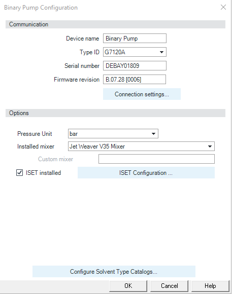 In the additional configuration of the pump module, choose Configure Solvent Type Catalogs…