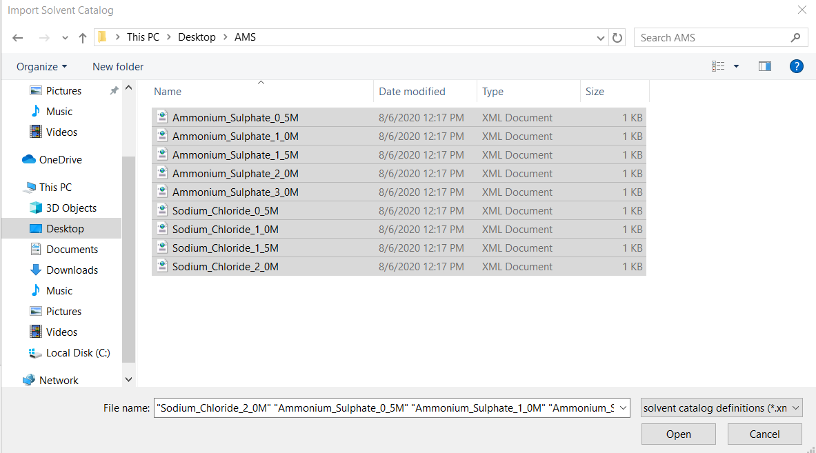 Navigate to the location of the downloaded Agilent Solvent Calibration Table and click the Open button. Keep in mind multiple solvent calibration tables may be imported at the same time.