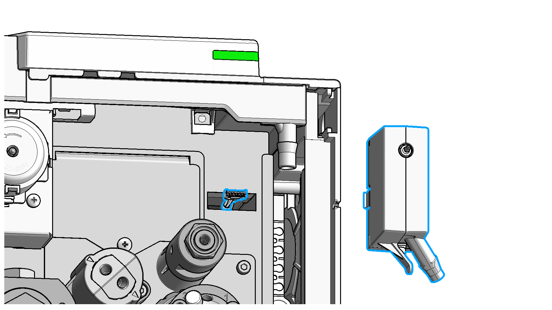 Connect the cable to the new seal wash sensor.