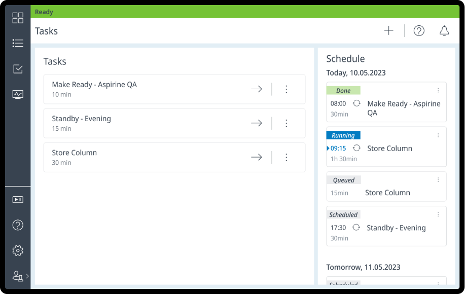 Tasks offer a possibility to automate common procedures. Such as equilibrating the instrument or preparing it for standby. They can be customized and scheduled as needed.