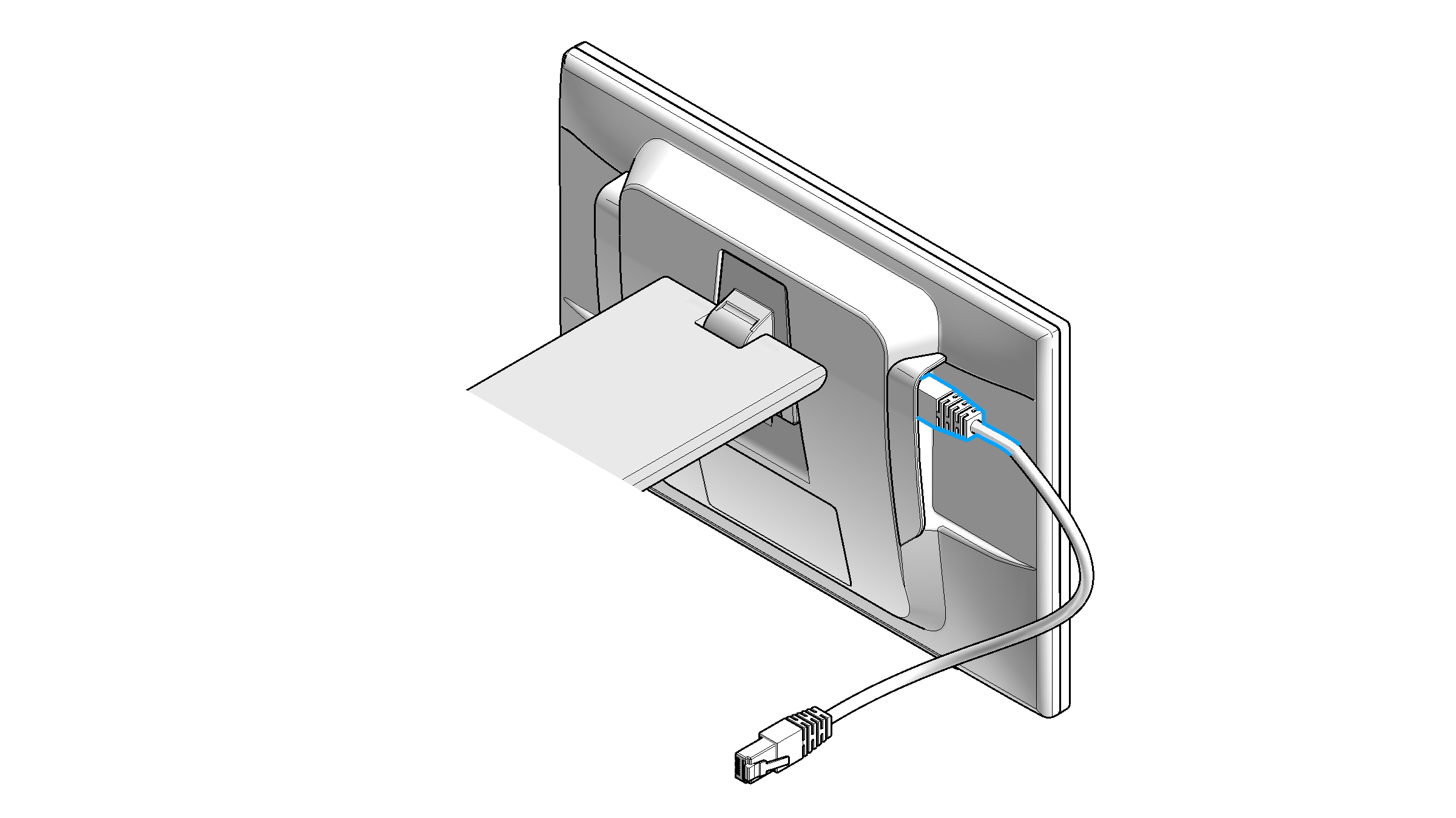 Connect the Power over Ethernet (PoE) cable to the connection on the back of the Assist Interface. Install the other end of the cable at the front of the Assist Hub.