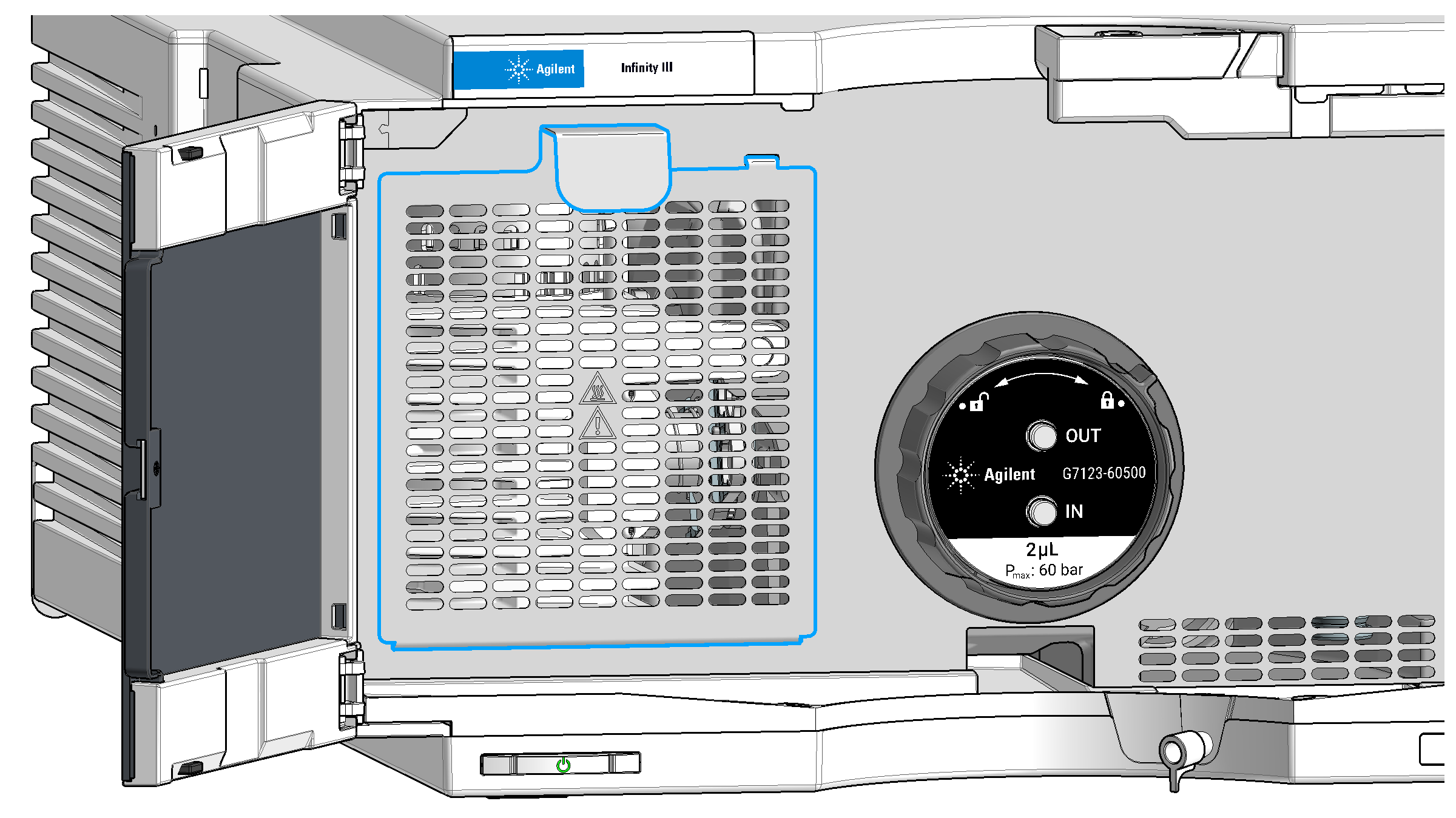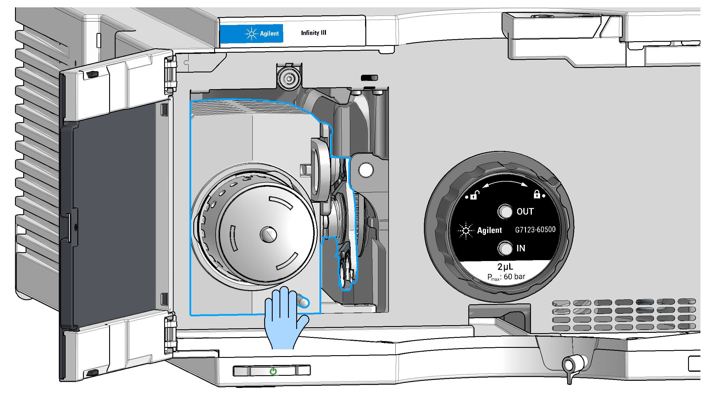 To unlock the flow cell, turn the black collar of the flow cell counter-clockwise until stop.