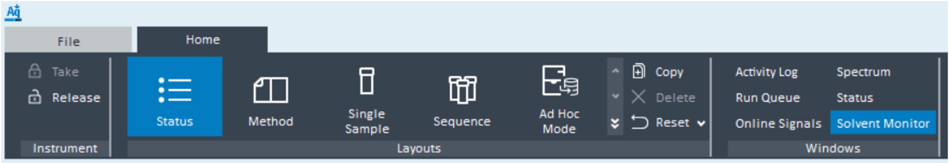 The solvent level in the bottles can be continuously observed through the Solvent Monitor window selected through the OpenLab CDS ribbon tab.
