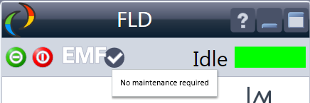 | EMF Status shows Run / Ready / Error state and “Not Ready text” or “Error text” Offline (gray) Ok. No Maintenance required (green) EMF warning. Maintenance might be required (yellow) EMF warning. Maintenance required (red)