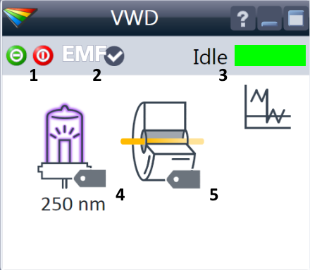 Within the detector GUI, there are active areas. If you move the mouse cursor across the icons the cursor will change.