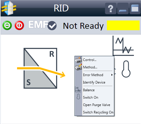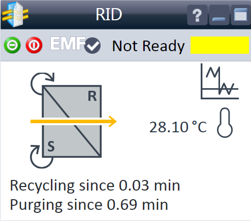 | EMF Status shows Run / Ready / Error state and “Not Ready text” or “Error text”