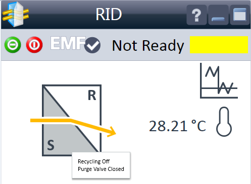 The Purge Valve status (closed/open) and the Recycle Valve status (off/on) is shown when the cursor moves across the flow cell icon. |