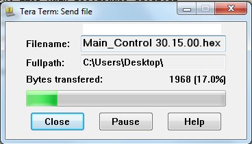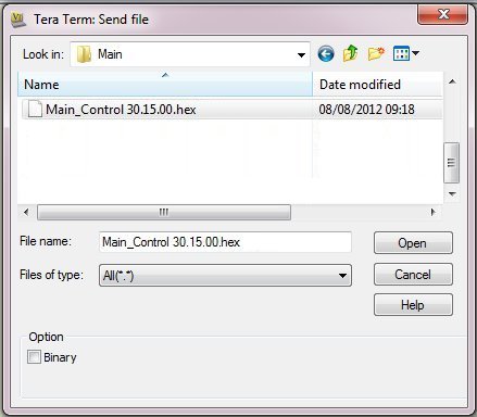To choose the firmware file, select the Send File option from the File menu in the toolbar and navigate to the folder where the file is located.