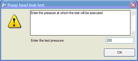 The test determines the leak rate of the system between pump outlet valves and a blank nut. The blank nut can be positioned at different locations in the system before the flow cell, to determine and verify the leak rate of individual modules and components. The test allows for setting the pressure at which the test is performed. The leak rate of high pressure parts is not always a linear function and therefore it is recommended to perform the test at a pressure that corresponds to the normal operating pressure of the system.