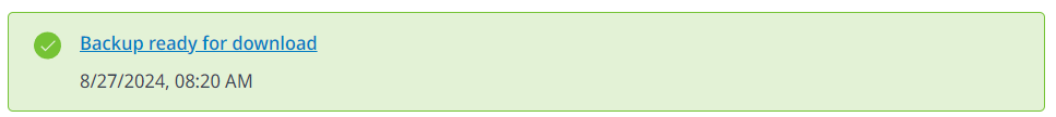 If you have selected the Download option, a hyperlink to the backup is created once the backup is completed. Select the link to download the data.